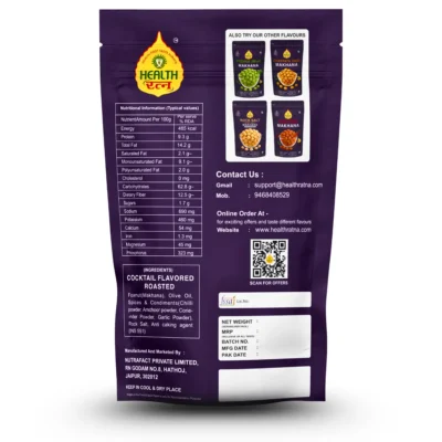 Health Ratna Makhana Combo Of 05 Packs – Peri Peri, Mint(Pudina), Chatpata Chat, Cocktail & Rock Salt (50g each pack)
